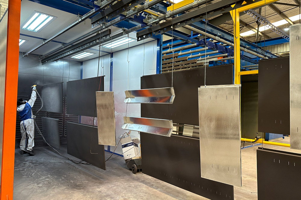 Nous apportons un soin très particulier à la finition de nos Mobiliers : la préparation des surfaces et le revêtement peinture, Poluyréthane ou Epoxy, Chaine de Poudrage automatique, four de cuisson, atelier de métallerie, soudure semi-automatique pour la construction métallique, Pliage 8 Axes.